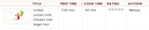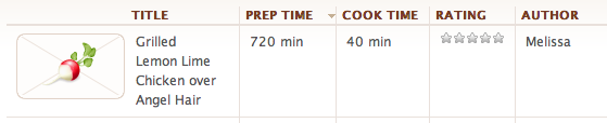 Allowing the user to sort the results allows them to easily locate the recipes they’re interested in. It also provides the secondary benefit of allowing the user access to recipes that might have not been otherwise displayed. For example, if the user searched for “chicken” and got all 1,500 results, they would only see the top 100 chicken recipes with the highest rating. If they then sorted the results by prep time, they could then see the top 100 lowest prep times regardless of the rating; in other words, I sort the total result set and not just the recipes displayed on the page. True, I have to hit the database again to re-sort but I figure it’s a pretty good solution while I have a relatively small amount of data in the database.